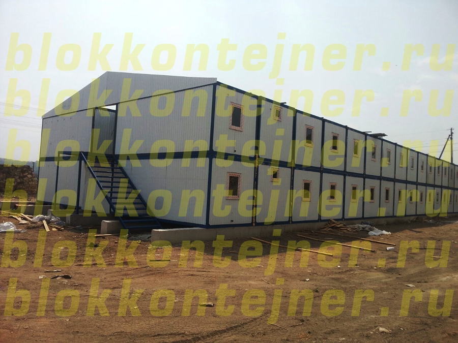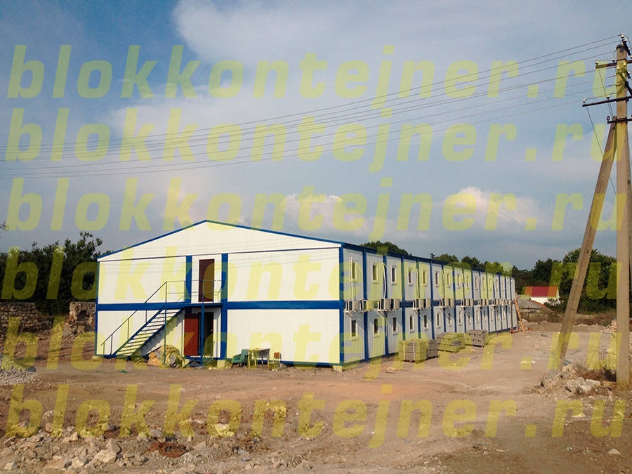 Модульное здание состоит из 64 единиц блок - контейнеров БК 6,0*2,4*2,5м.