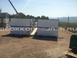 1. Установка блок-контейнеров на фундамент в проектном порядке,  монтаж лестниц металлических с площадкой -  2 шт. монтаж спаренных блок-контейнеров в одно помещение.